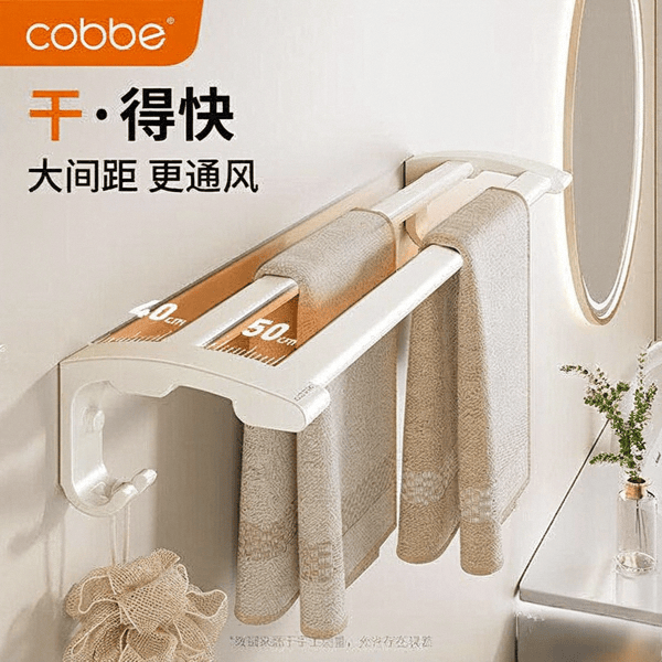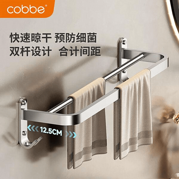 这款设计非常用心,杆距设计合理,通风效果好,毛巾不容易有异味。多功能挂钩也很实用,小物件随手可挂,灵活性很高。