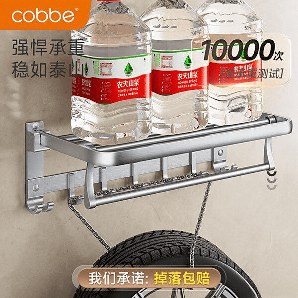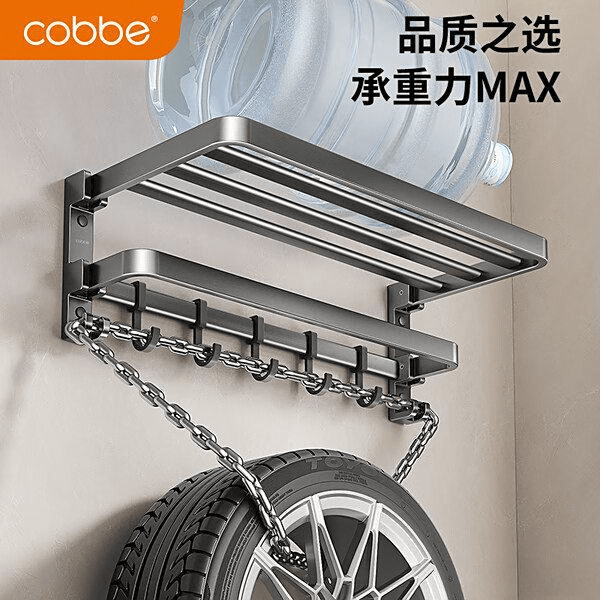 收纳能力方面,这款挂件不仅有挂杆,还有加宽台面,能够放置不少洗漱用品,空间利用率极大的提升。双层设计和多功能挂钩的组合,让毛巾、浴球都有合适的位置,浴室看起来更整洁。