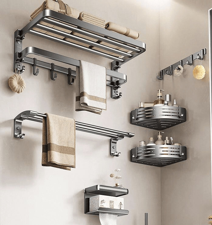 其次,材质方面,太空铝和304不锈钢都是不错的选择,防潮防锈是关键,毕竟浴室天天与水打交道。颜色和风格也要与浴室整体风格搭调,这样装起来才好看。能够承担重量的能力也很重要,尤其是置物架,放重物稳不稳当,避开使用不久就塌了。