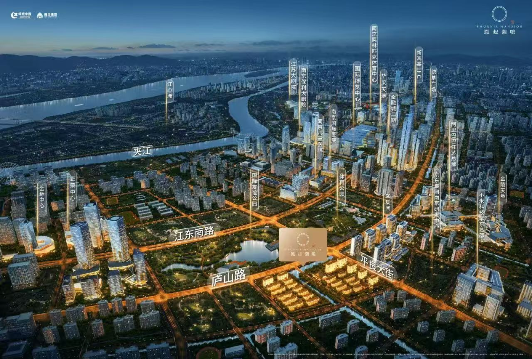凤起潮鸣坐落河西平良大街与庐山路交口,紧邻南京世界友谊公园,阿里巴巴江苏总部、小米华东总部等大厂环伺。生态+金融,高能级配套齐聚,可谓是河西南的“心脏”地点。