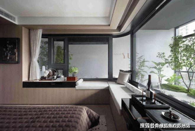 270°超大转角飘窗:是主人仰视众多星空的地点,俯视满目绿意。三玻两腔Low-e玻璃体系窗,确保了主卧的极度静寂,统筹功用与情感维度,发明全新的日子方法。